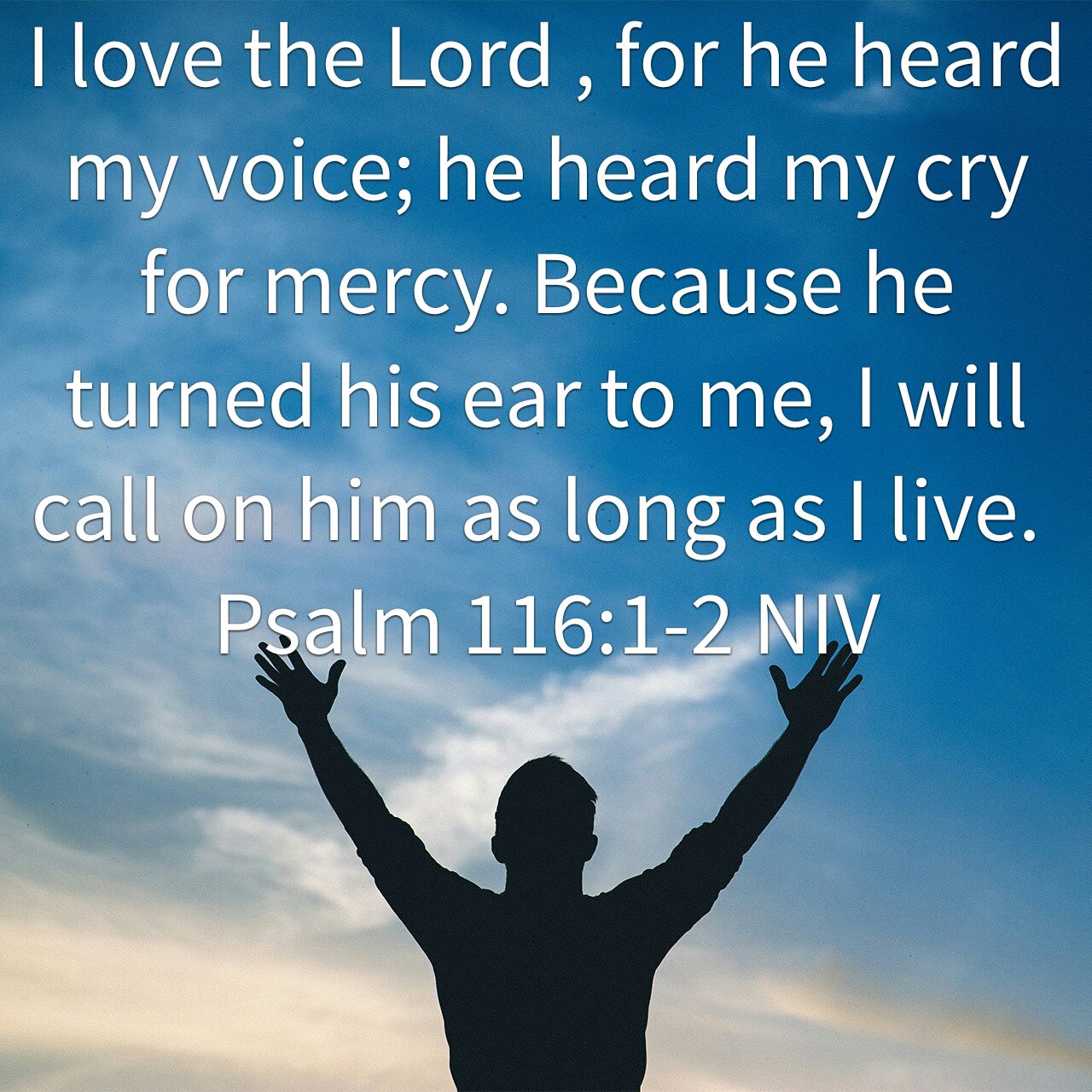 I love the Lord , for he heard my voice; he heard my cry for mercy. Because he turned his ear to me, I will call on him as long as I live.