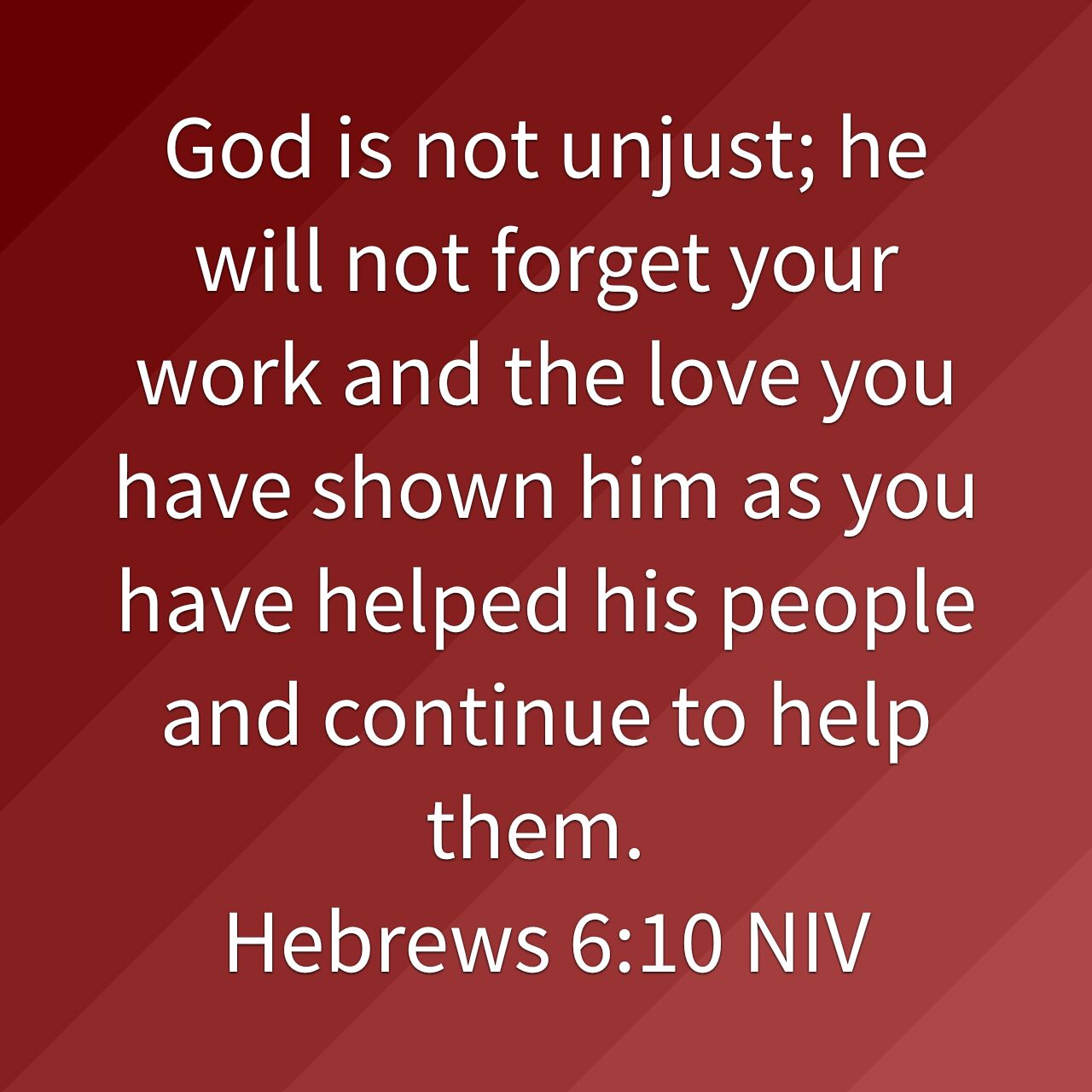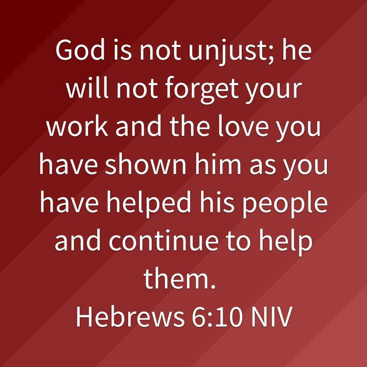 God is not unjust; he will not forget your work and the love you have shown him as you have helped his people and continue to help them.