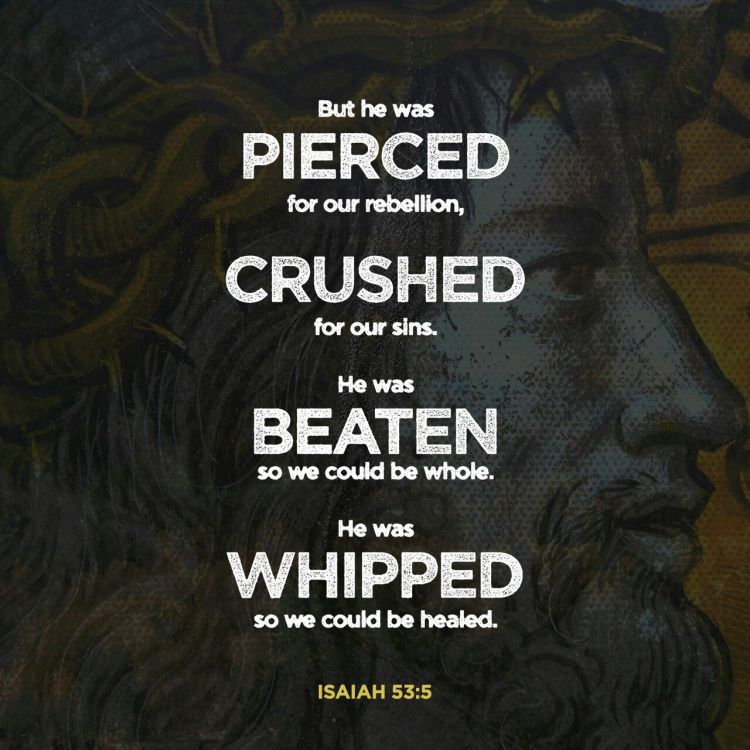 But he was pierced for our rebellion, crushed for our sins. He was beaten so we could be whole. He was whipped so we could be healed.