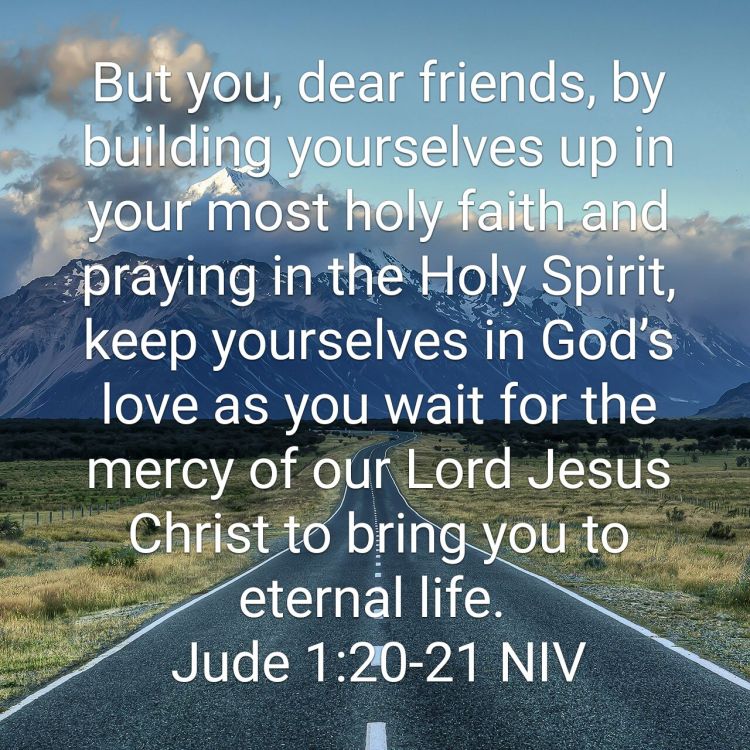 But you, dear friends, by building yourselves up in your most holy faith and praying in the Holy Spirit, keep yourselves in God’s love as you wait for the mercy of our Lord Jesus Christ to bring you to eternal life.