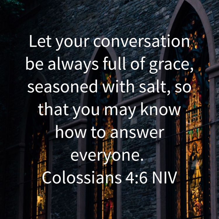 What we talk about and how we talk about others reveals a lot about who we are and what we believe. Many of us are satisfied to discuss superficial facts, tasteless gossip and general information. When it comes to expressing gratitude, sharing feelings and discussing the deep and meaningful things of life most people seem to put up defensive barriers. As followers of Jesus, we are called to be known for our tasteful conversation. I believe this points to being open, honest, real and reflective of the hope, joy, love and peace that we have been given. It is unfortunate that many seem to ignore this, or are ignorant of it, as it is often difficult to identify a follower of Jesus simply by their conversation.