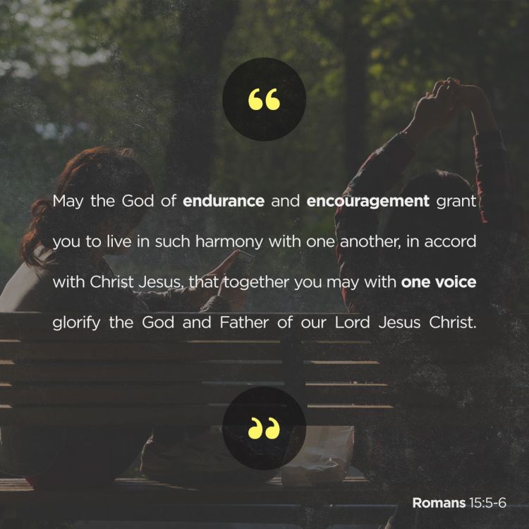 Living in peace and harmony is an ideal which many wish for but have resolved it to be unacheivable. If only selfish ambition and personal opinion could simply and magically disappear then life would be bliss. A utopia of selfless cooperation, unified thoughts and harmonious community would lack division, arrogance and violence. It would quite possibly also be boring unless everyone was committed to a greater and higher purpose. A purpose where they were all working together to achieve the same goal. A purpose which drew them together and kept them together. A purpose which encouraged growth and drew out the best in each other. This is what we are called to as followers of Jesus and the writer of today’s verse is under no illusions that this simply just happens. We need the encouragement from God to endure disappointment, overcome discouragement and to work through issues that cause division. This is not primarily for our own sake but for the honour of the One who made and sustains us.